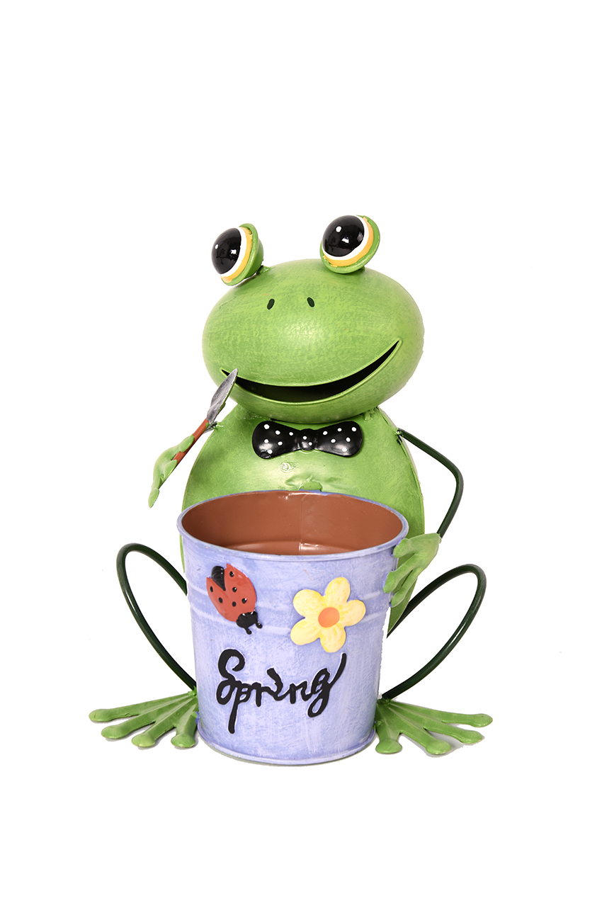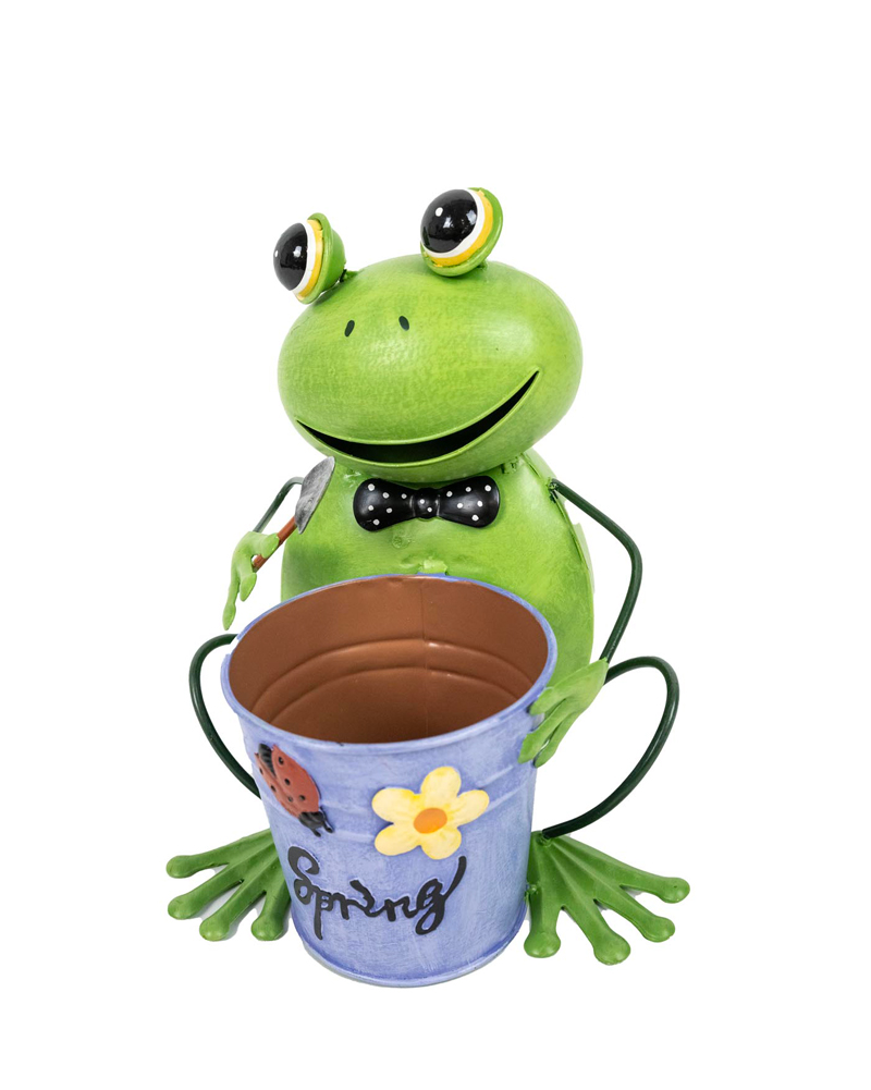 Añade un toque divertido y original a tu jardín con la Figura Rana Macetero. Con unas medidas de 21,5 x 22 x 26 cm, esta figura de metal no solo decora, sino que también sirve como macetero, creando un ambiente único en tu jardín, terraza o patio.