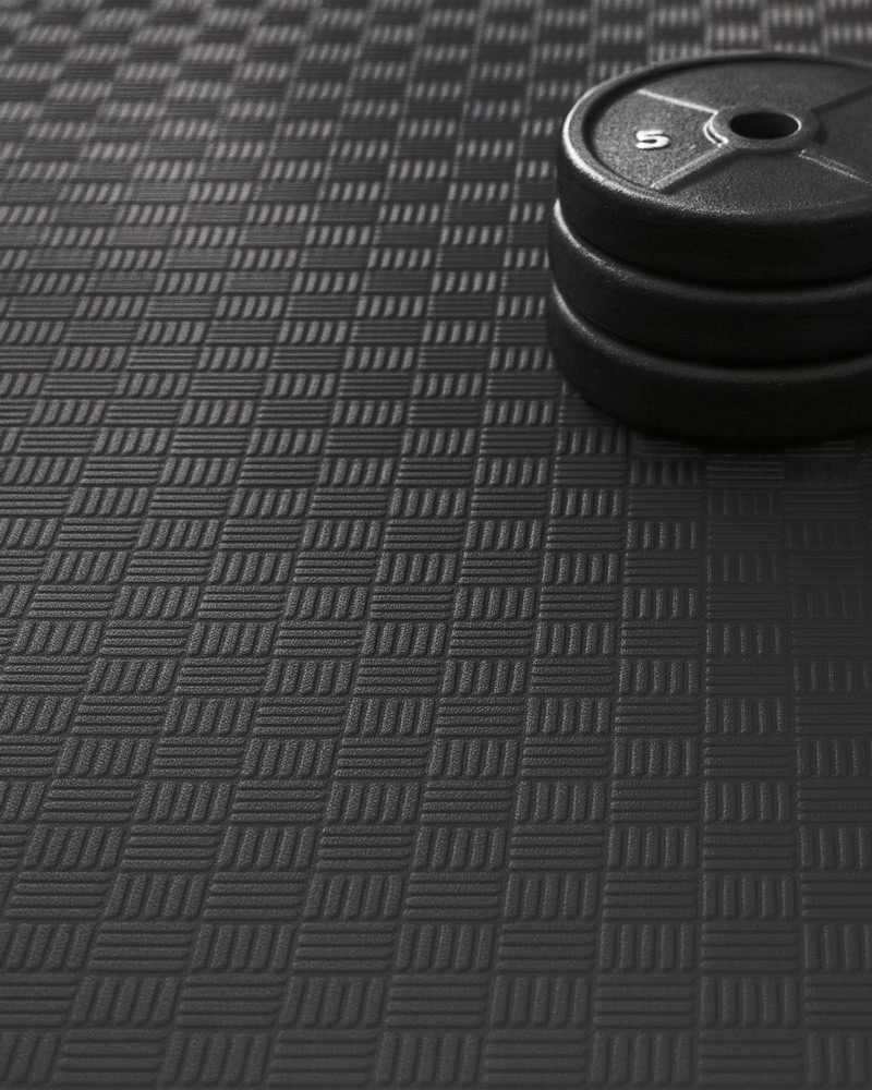 Su diseño con patrones en relieve tipo checker no solo mejora la estética del espacio, sino que también aporta una superficie antideslizante, aumentando la seguridad al evitar resbalones y caídas. Esto lo convierte en una opción perfecta para entornos donde la tracción adicional y la estabilidad superior son esenciales.