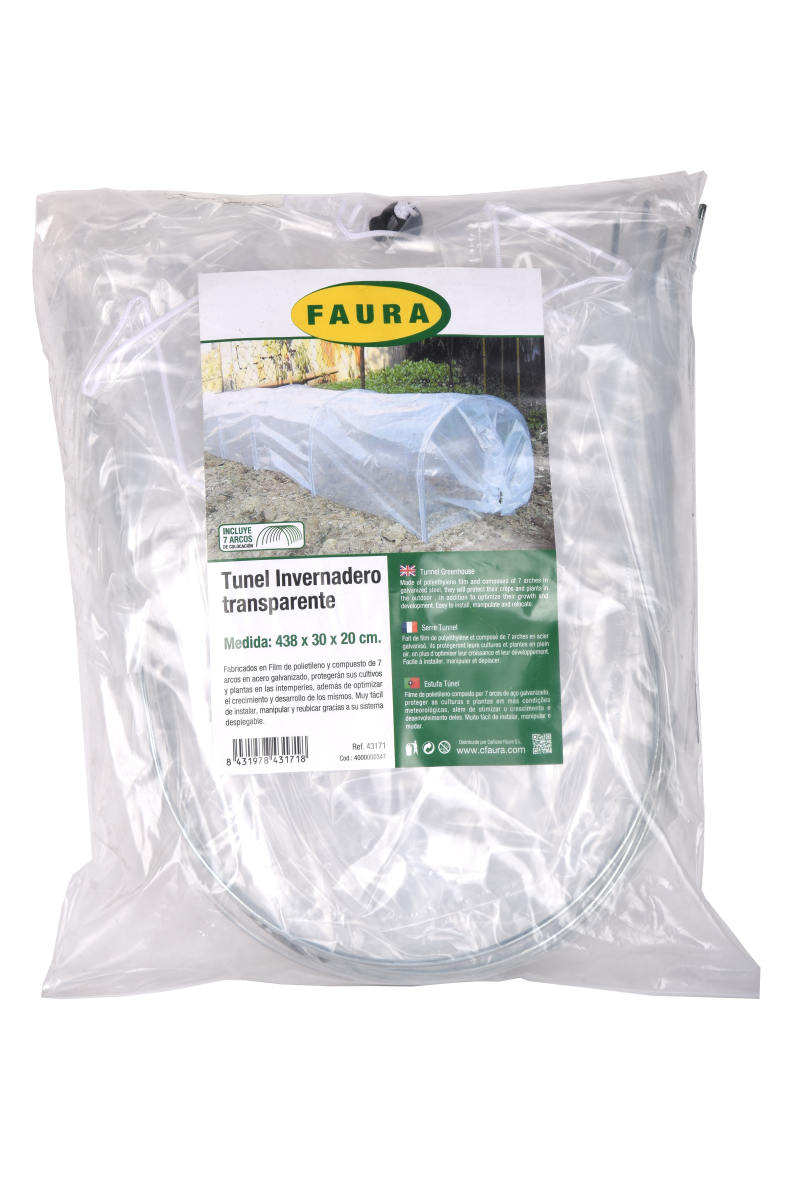 | 43172 | Túnel Invernadero Transparente | 400 × 120 cm | 12 ud./caja |